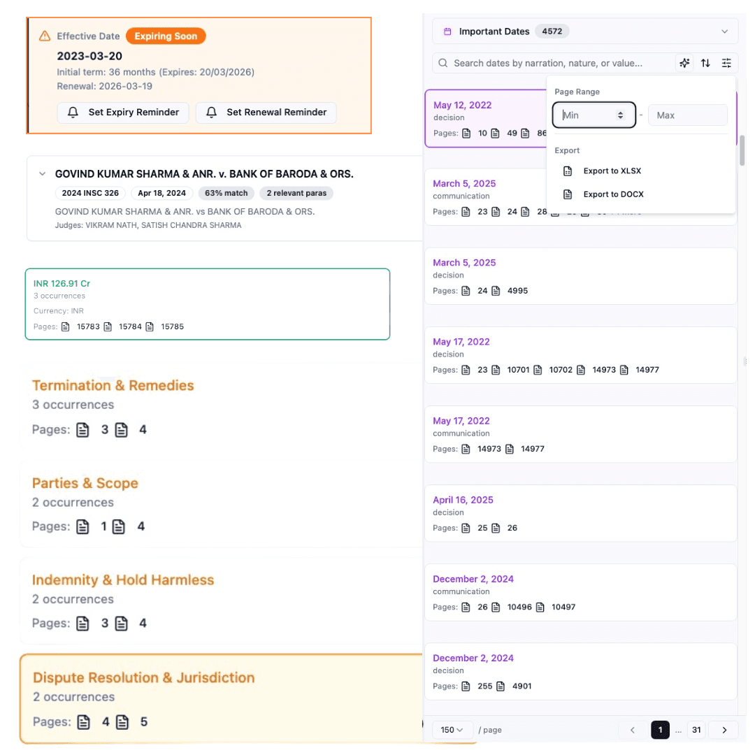 Bharat.law is designed to process litigation-scale case files—running into tens of thousands of pages or gigabytes of data—without manual splitting, preprocessing, or loss of context.