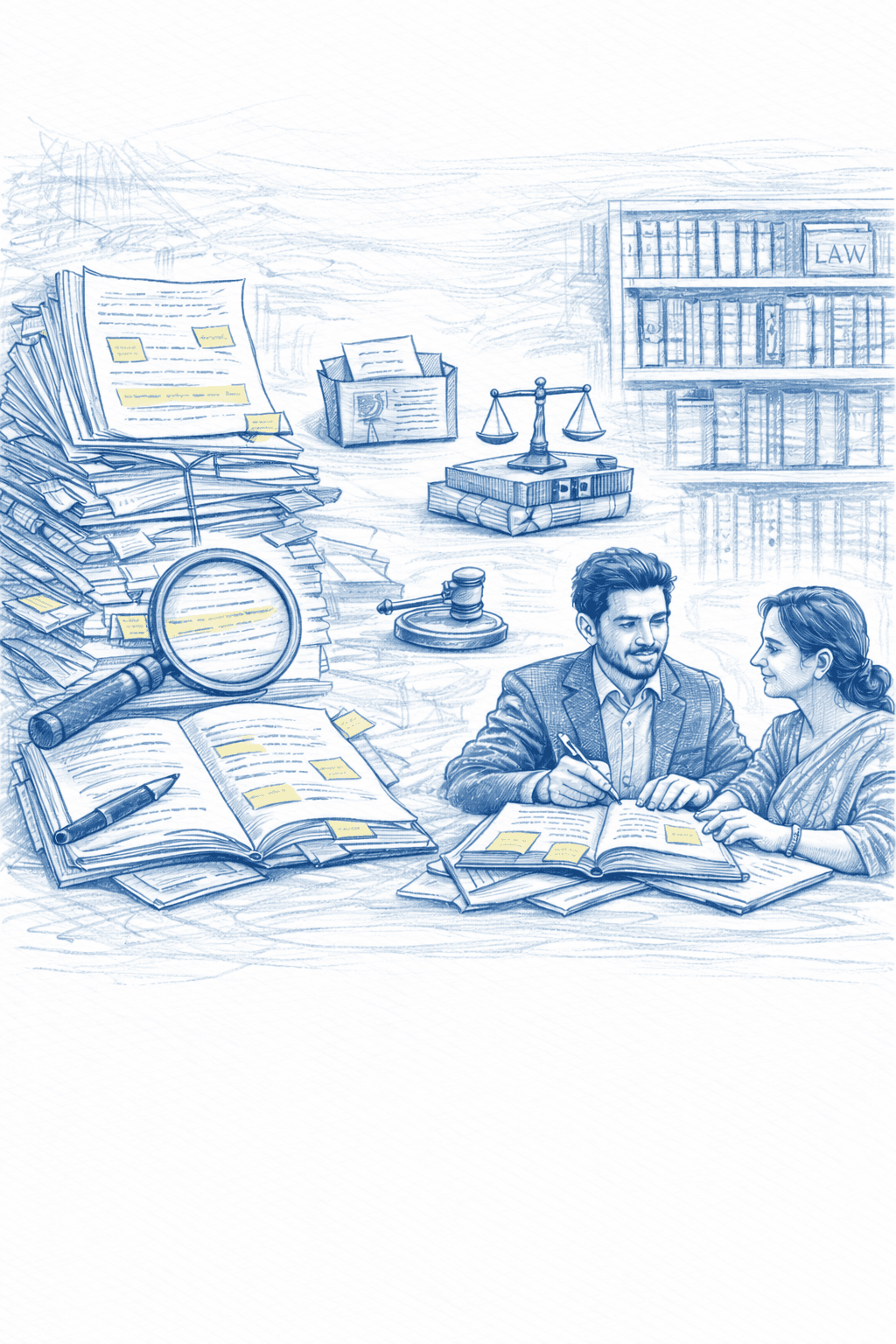 Indian litigation is document-heavy. Case files routinely span thousands or tens of thousands of pages.